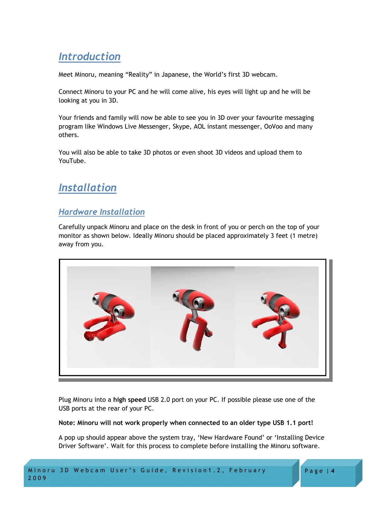 monitor as shown below. Ideally Minoru should be placed approximately 3 feet (1 metre)