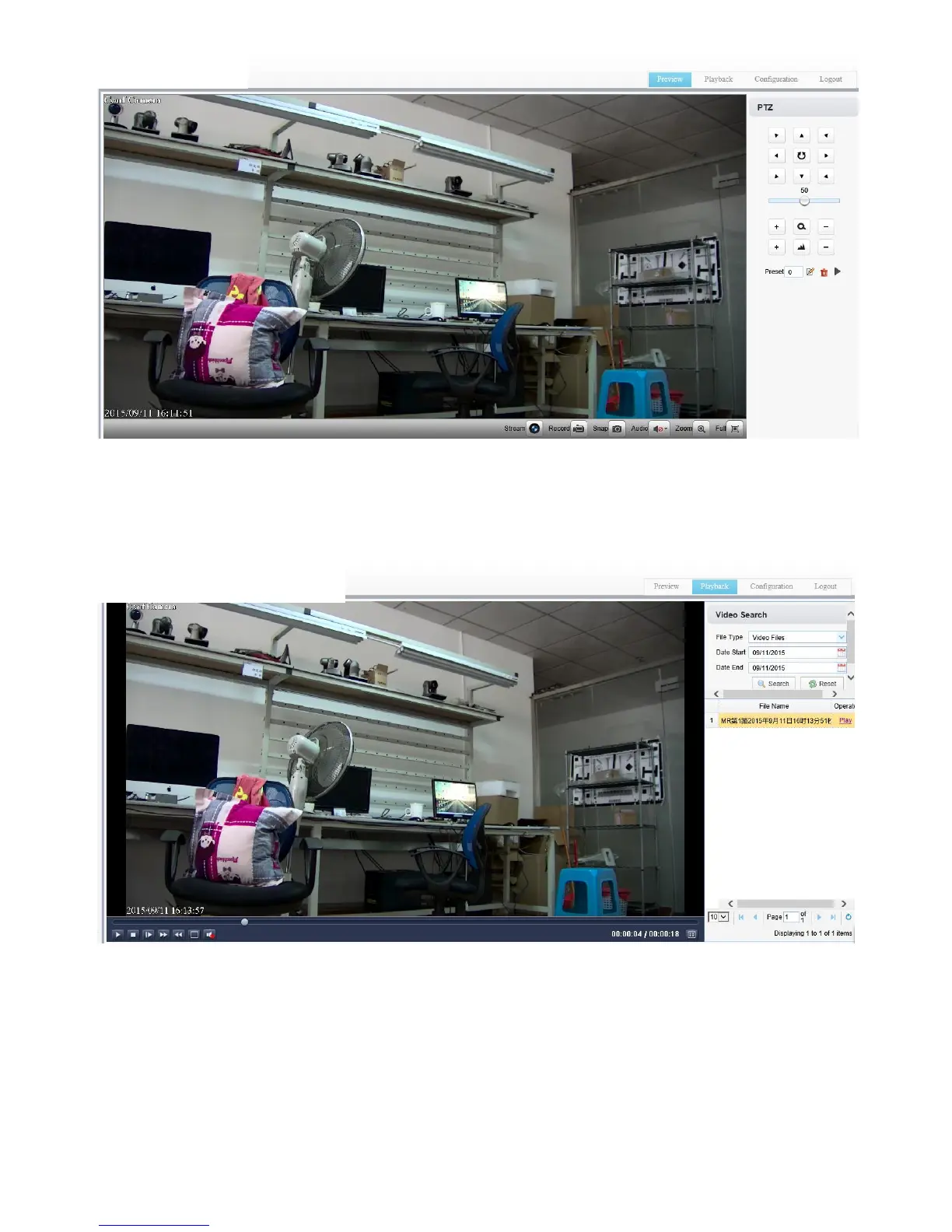 control the pan tilt, zoom, focus, record, snapshot, audio, enlarge, full screen and preset set, run and delete operations etc.