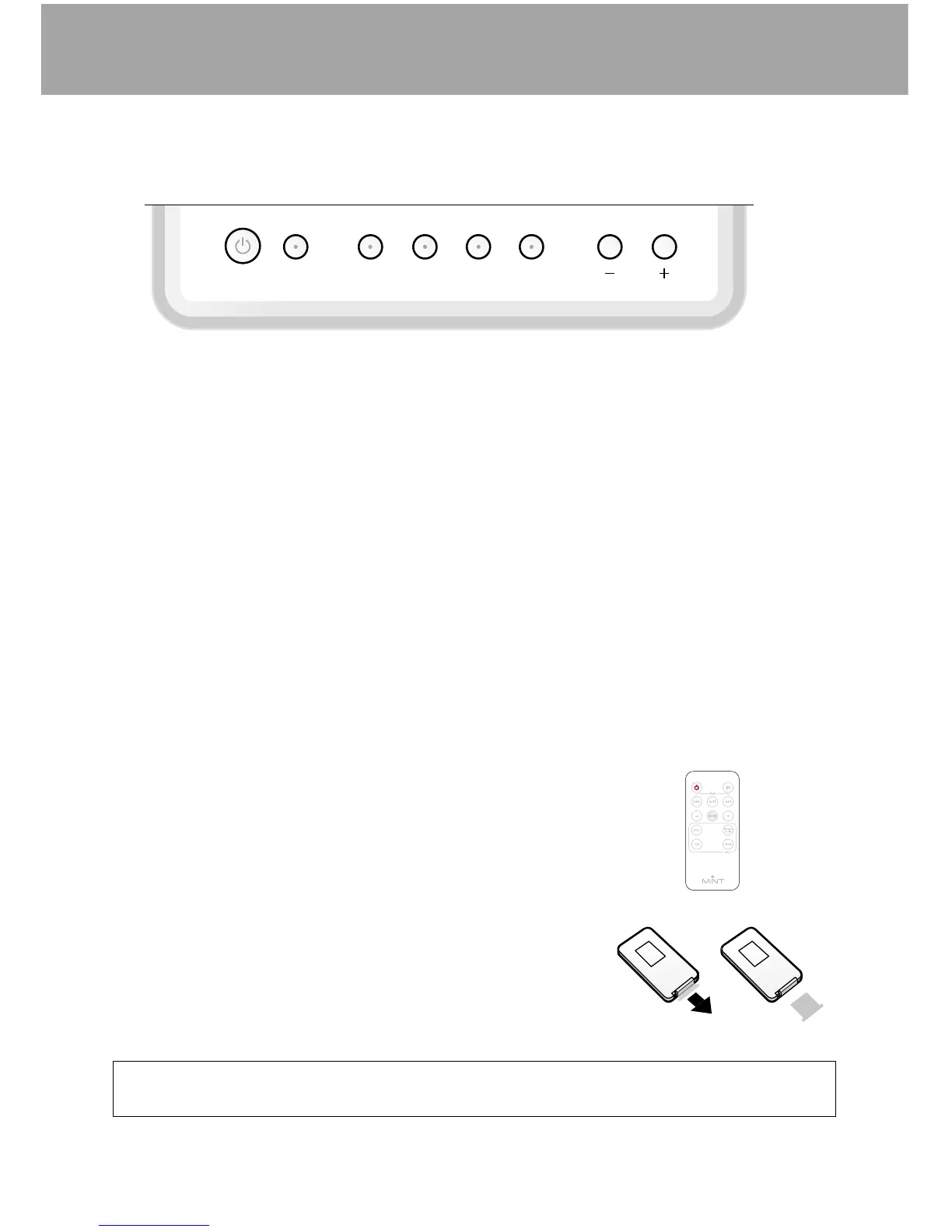 1. Press power to turn the system on. The button will glow mint green and one of the source-