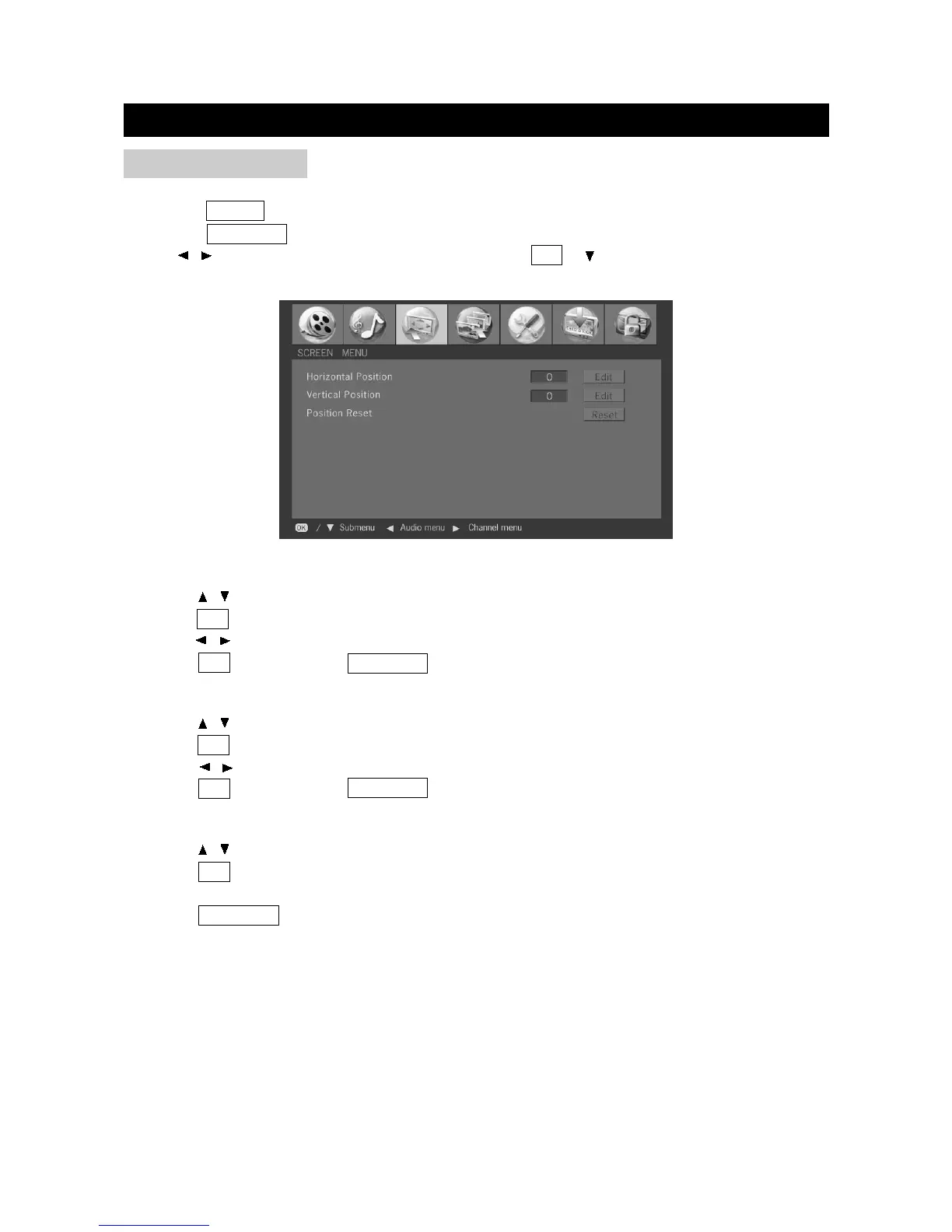 1. Press / to select "Horizontal Position" in "Screen" menu.
