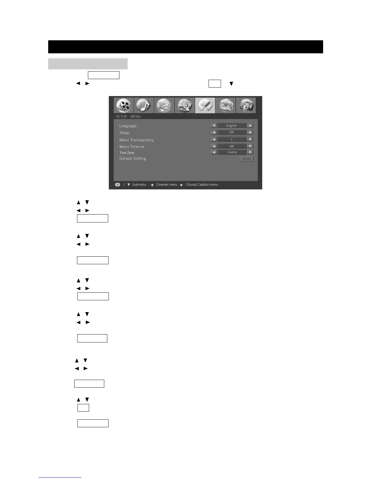 2.Press / to select the time zone among: Central, Eastern, Atlantic, Hawaii, Alaska, Pacific,
