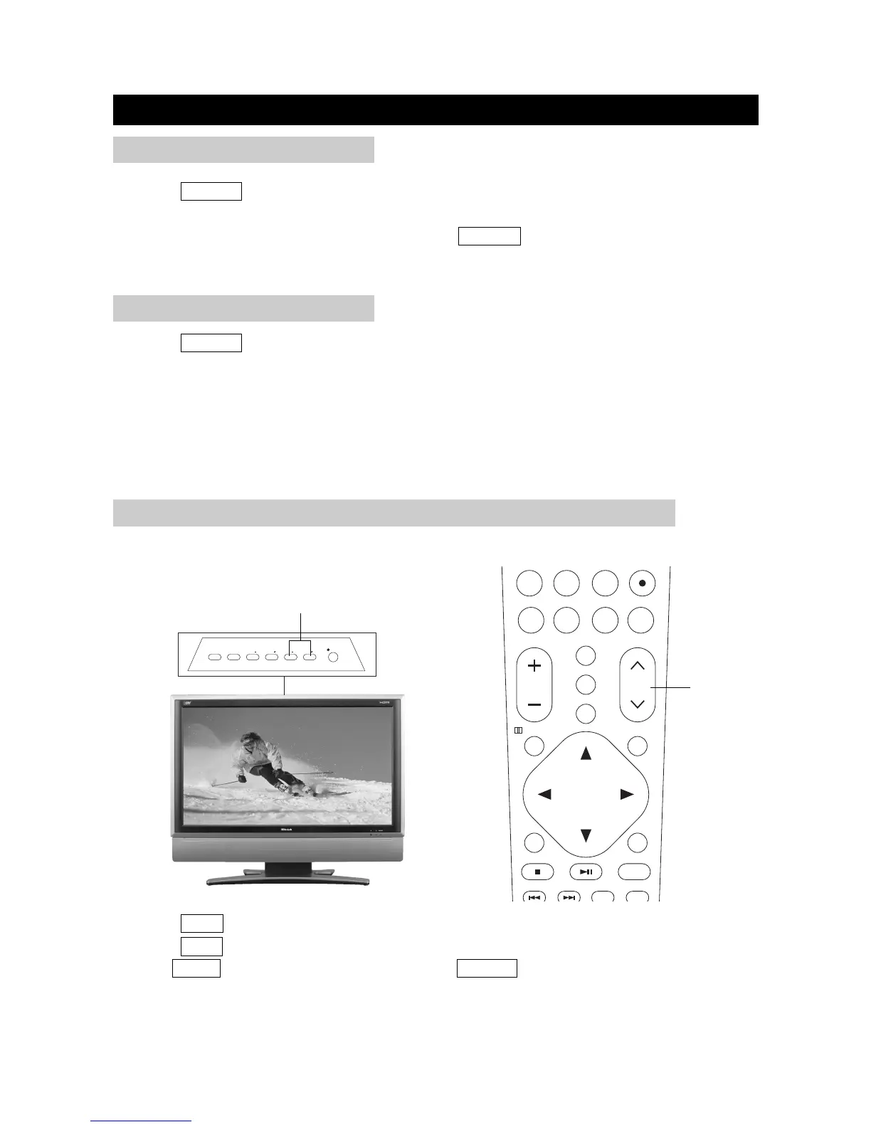 NOTE: CH+/- on the TV set operates the same as CH∧/∨ on the remote unit.