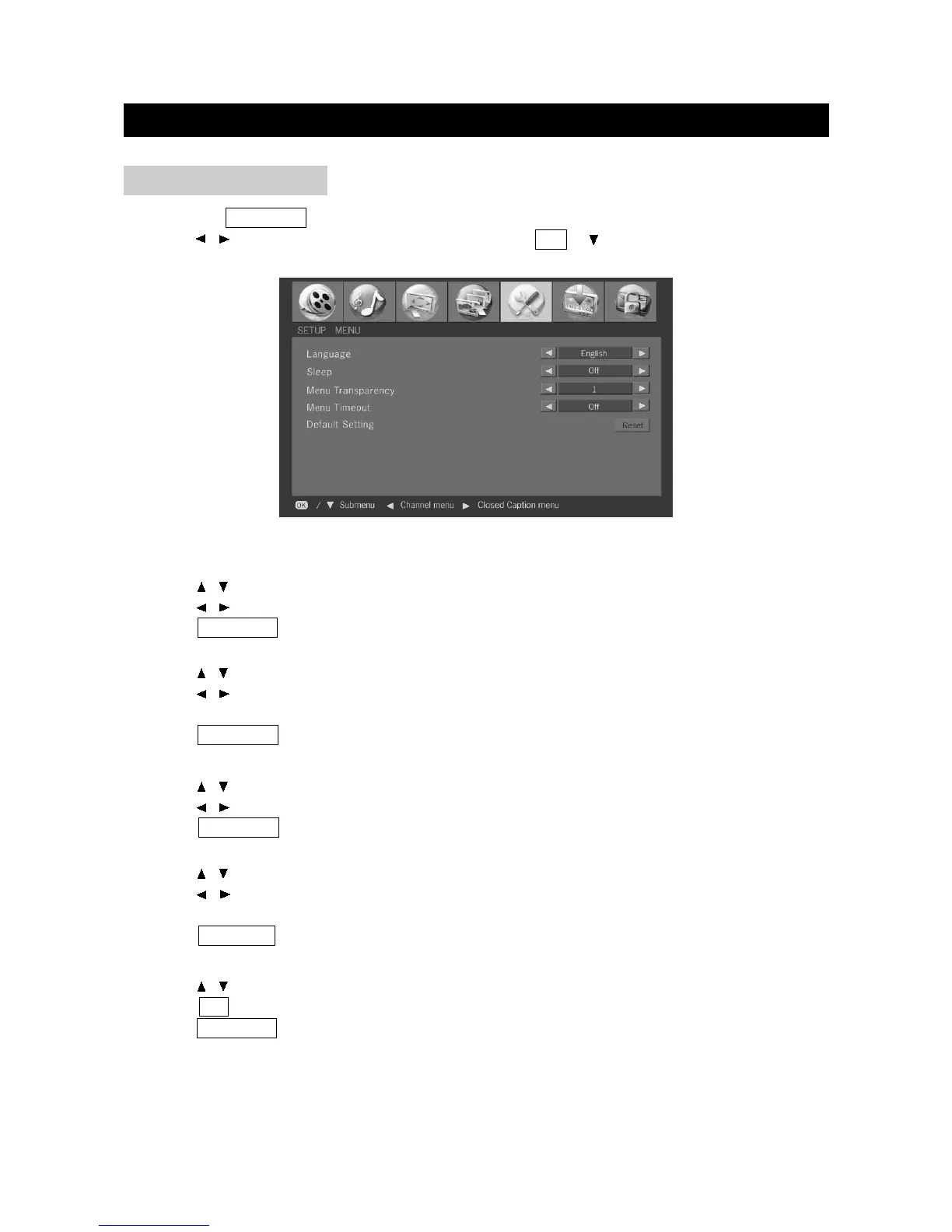 1. Press / to select "Menu Transparency" in "Setup" menu.