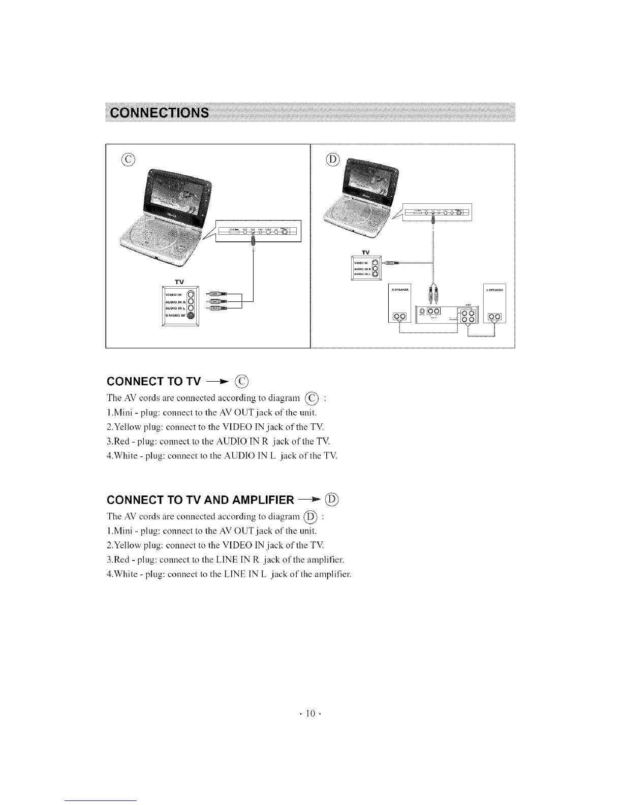 l,Mini - plug: connect to the AV OUT jack of the unit.