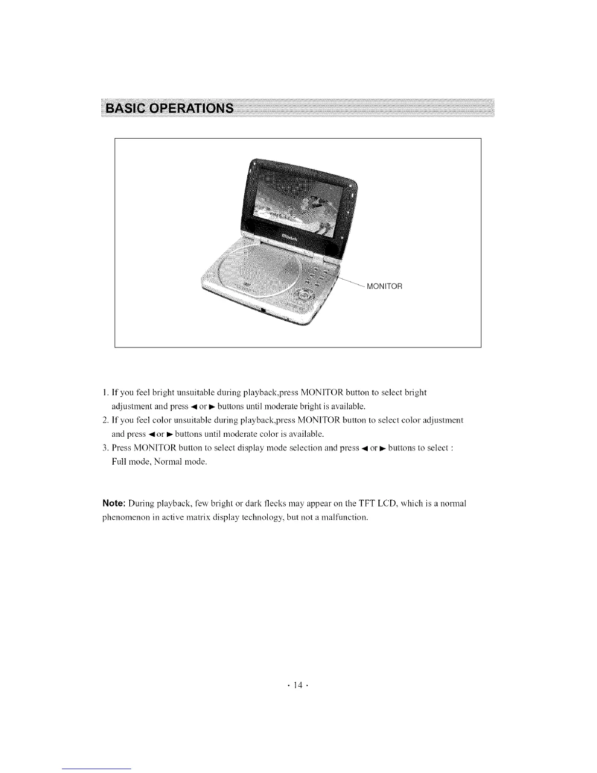 2. If you feel color unsuitable during playback,press MONITOR button to select color adjustment