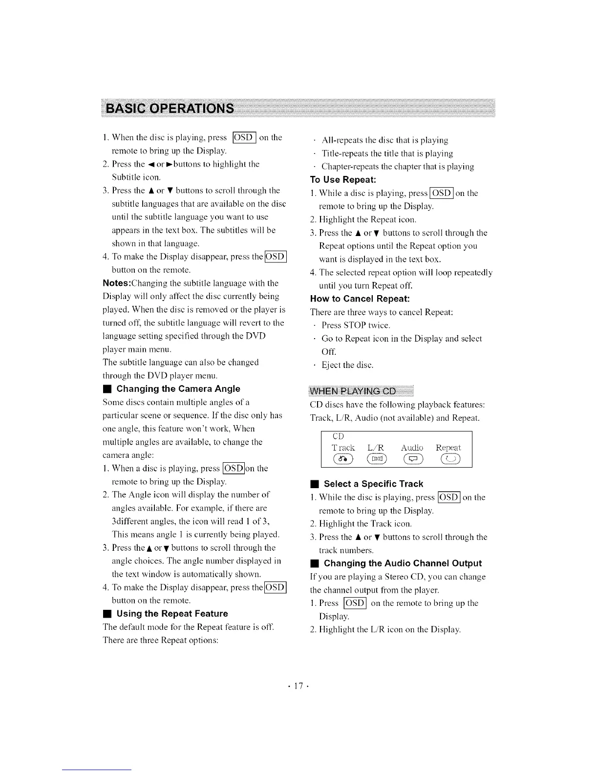• All-repeats the disc that is playing