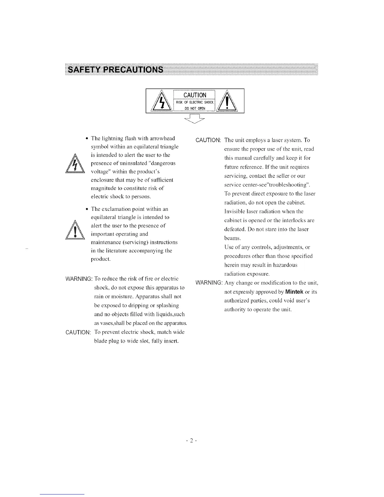 CAUTION: The unit employs a laser system. To