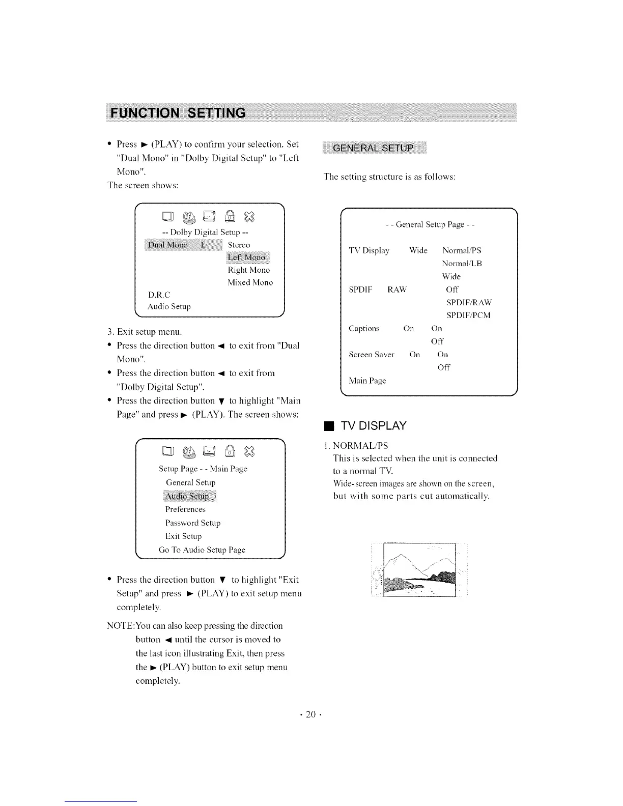 "Dual Mono" in "Dolby Digital Setup" to "Left