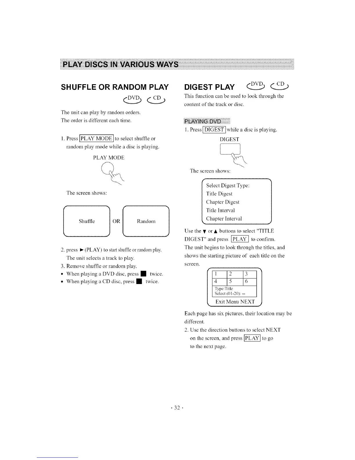 2. press _ (PLAY) to start shuffleor randomplay-.