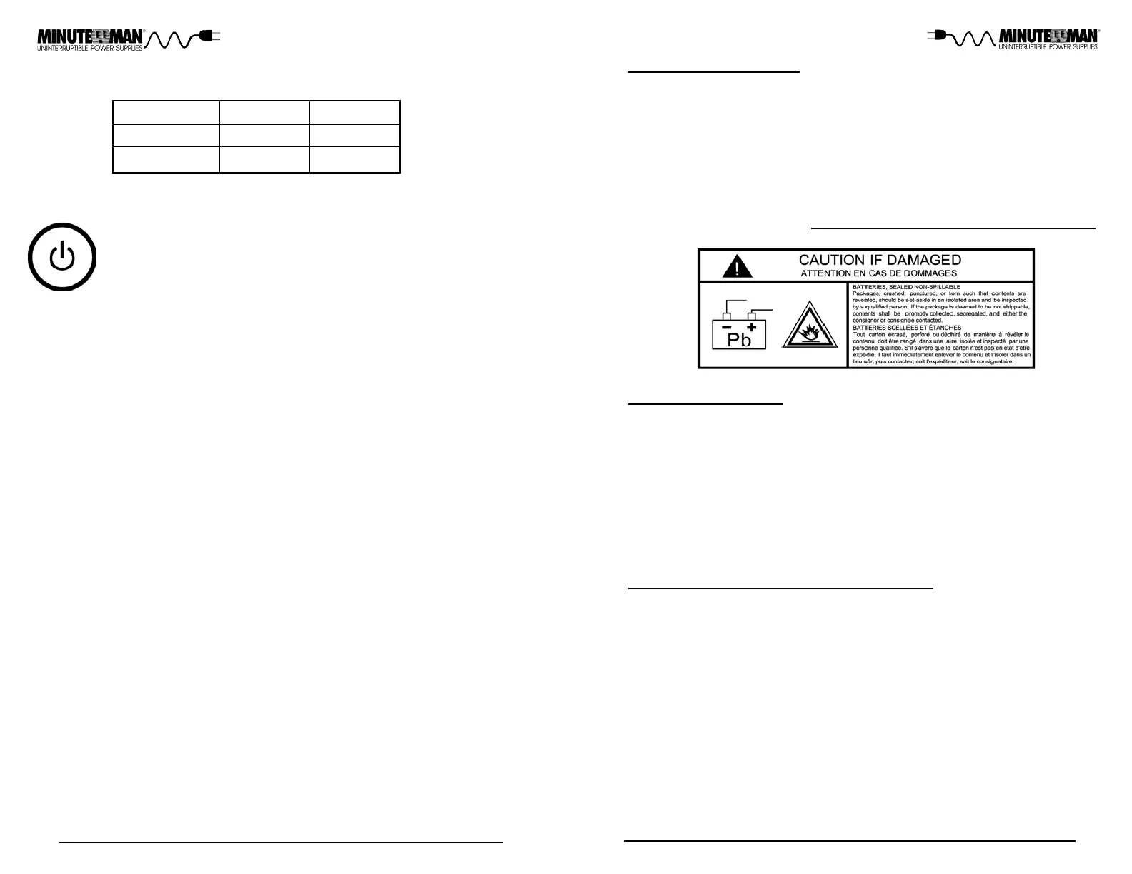 ON / OFF BUTTON: To turn the UPS on: press and hold the