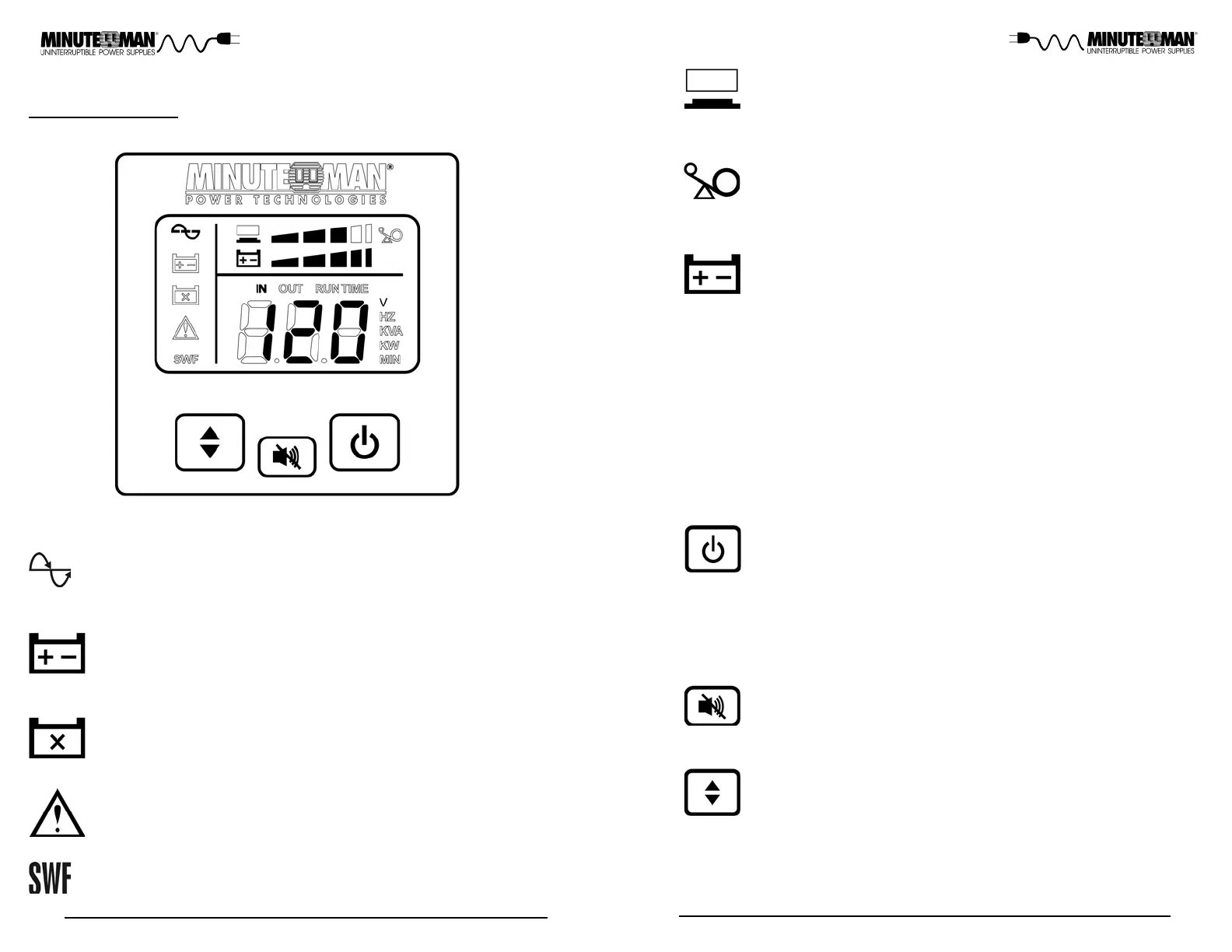 The Site Wiring icon (120V models) illuminates when the UPS de-