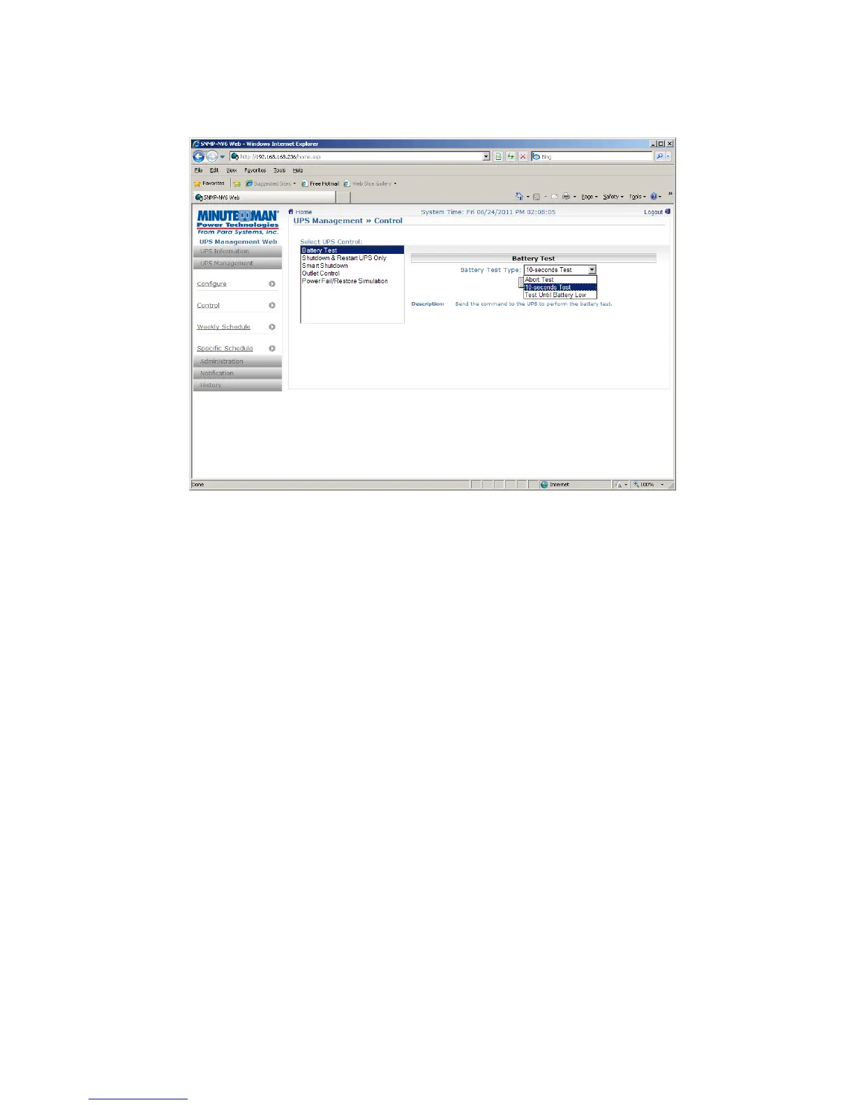 This menu allows you to send the control commands to the UPS.