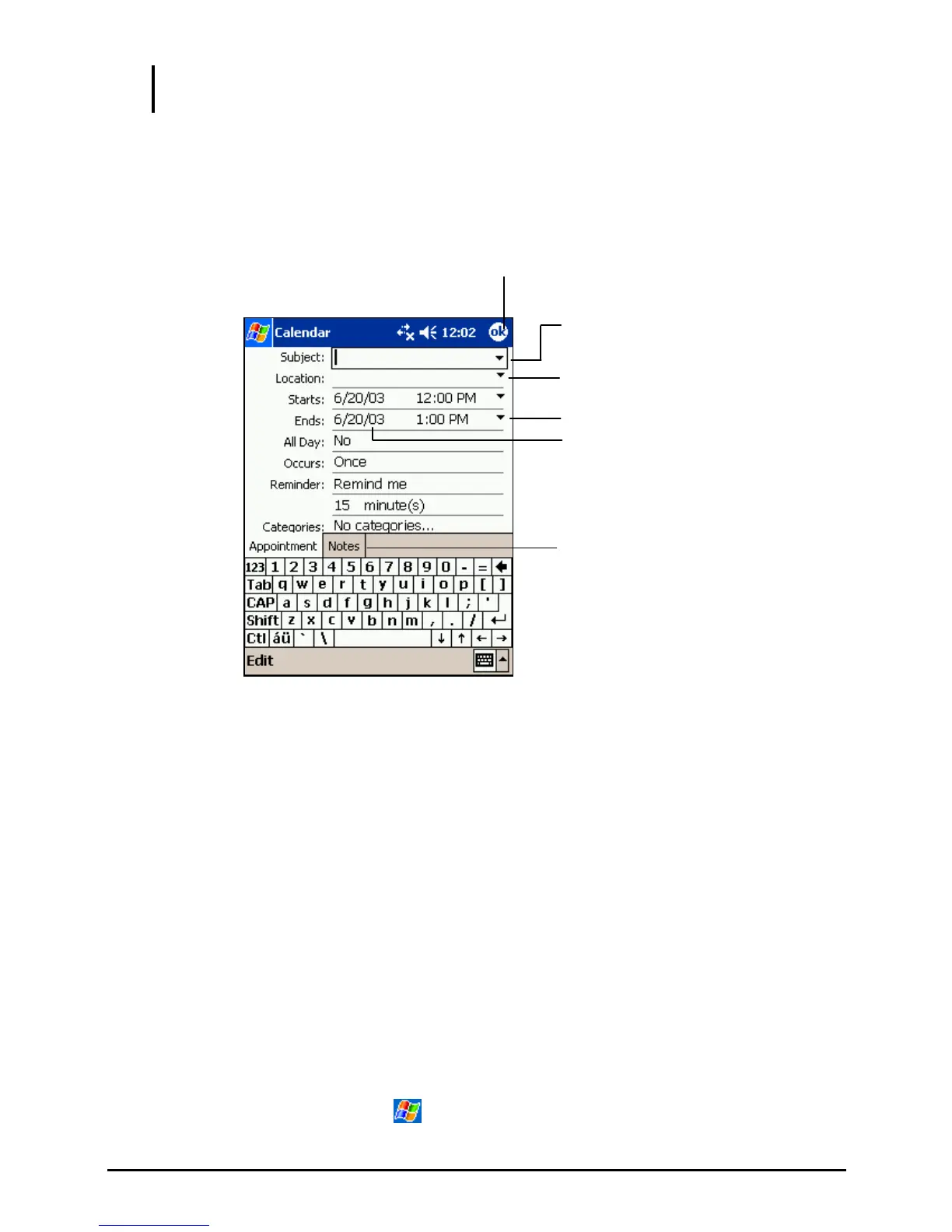 1. In Day or Week view, tap the desired date and time for the appointment.