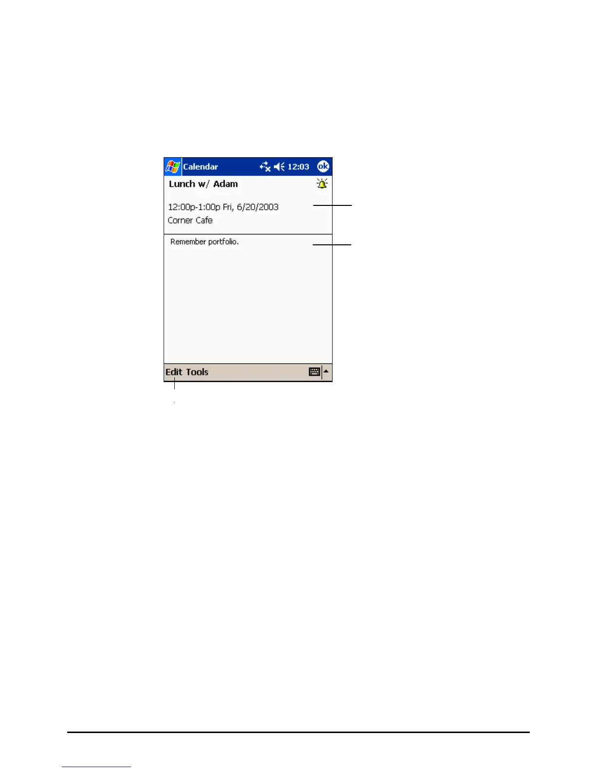 When you tap an appointment in Calendar, a summary screen is displayed. To