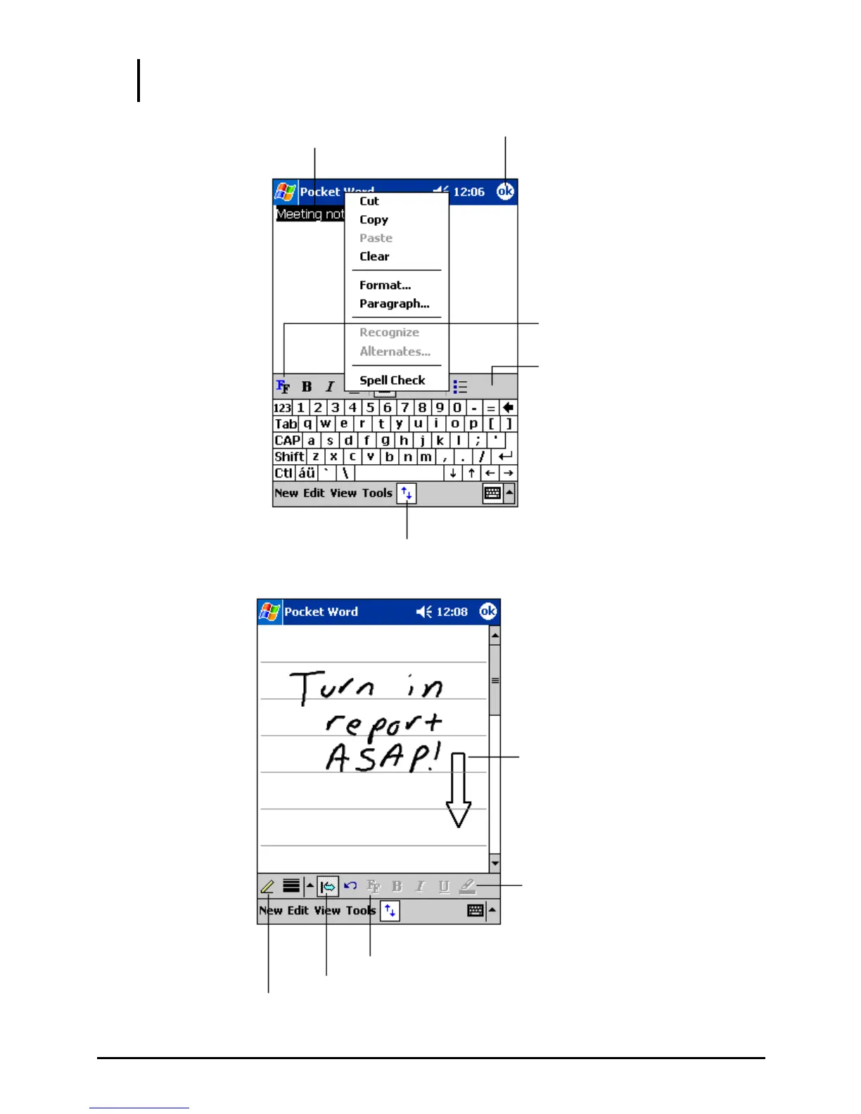 NOTE: Written words are converted to graphics (metafiles) when a Pocket Word