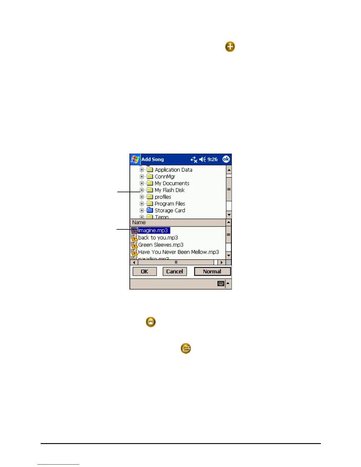 the lower part of the window is where you select the MP3 or wav file. Tap