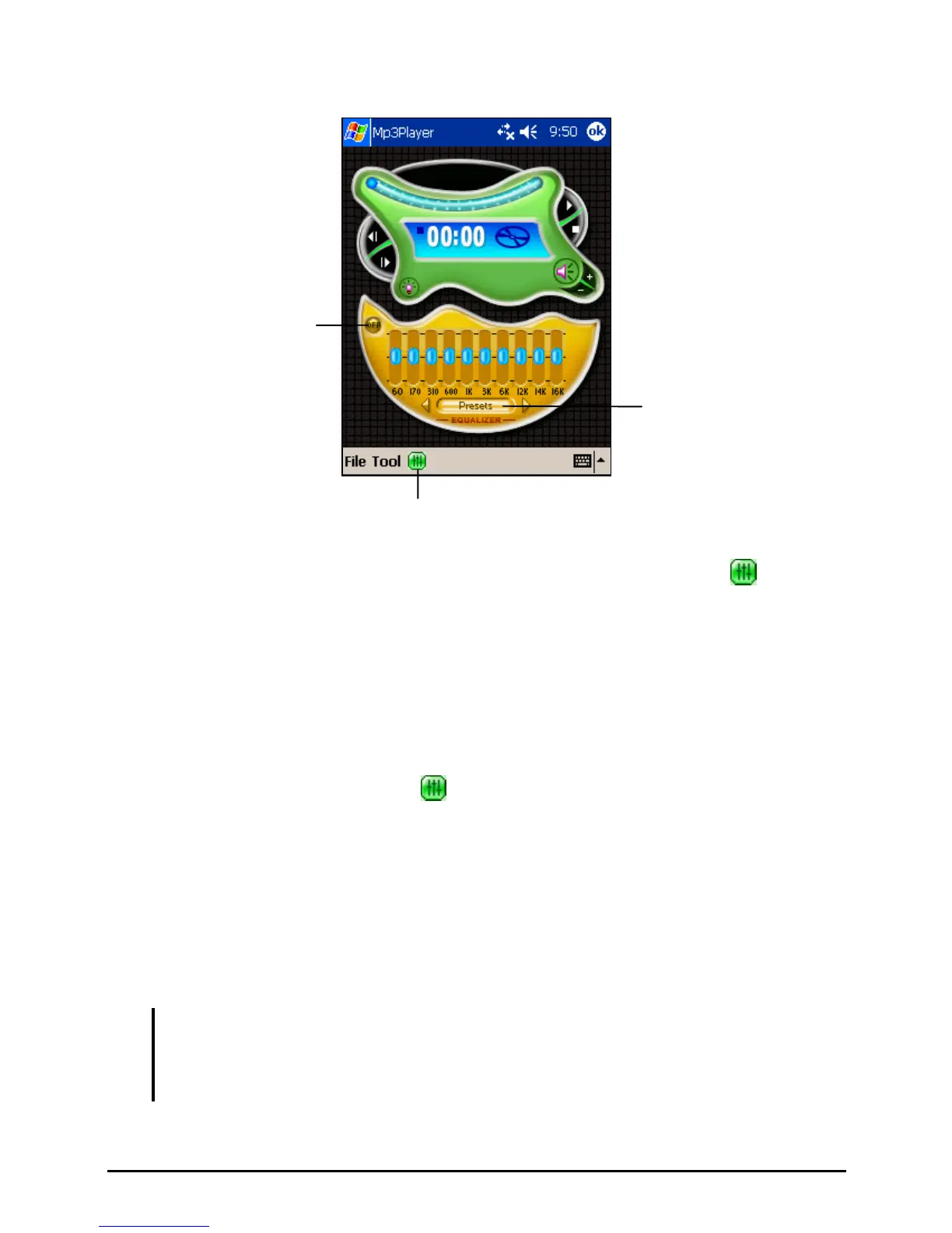 The MP3 Player provides 17 presets for various music effect. Tap