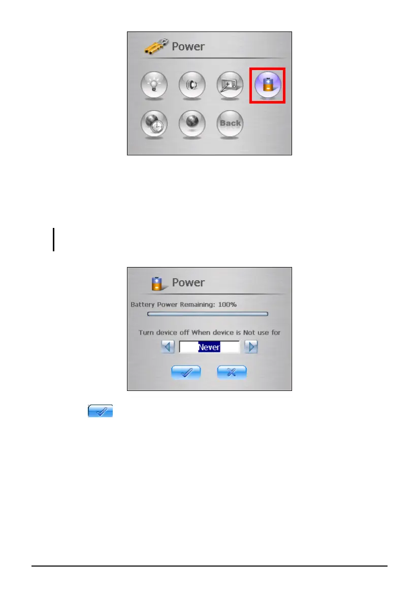 NOTE: If the level of power is too low, be sure to charge the battery with the AC adapter or