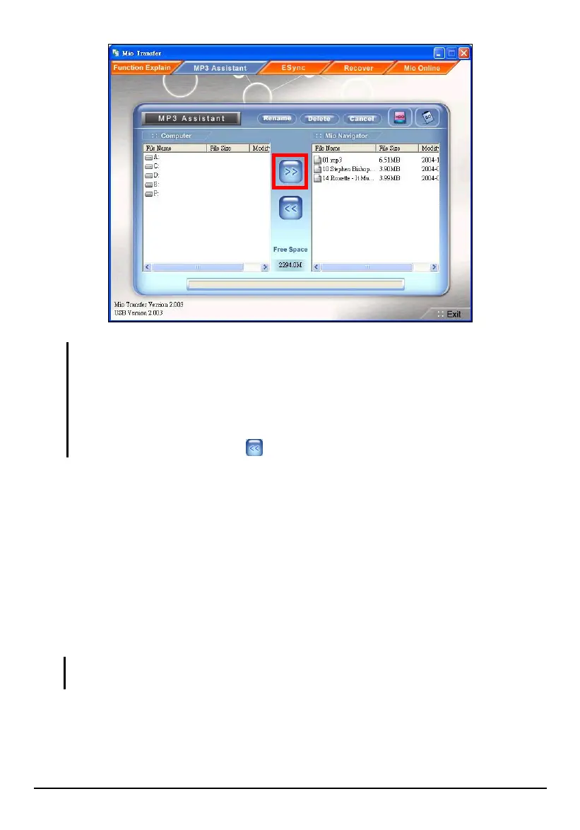 On top of the MP3 Assistant screen are three buttons for management of files.