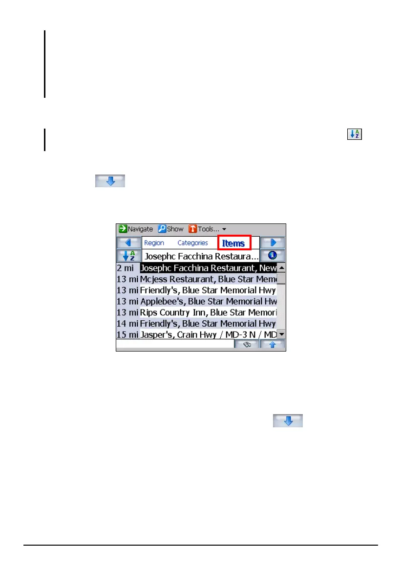 NOTE: The POIs are listed in order of distance. To sort them alphabetically, tap the