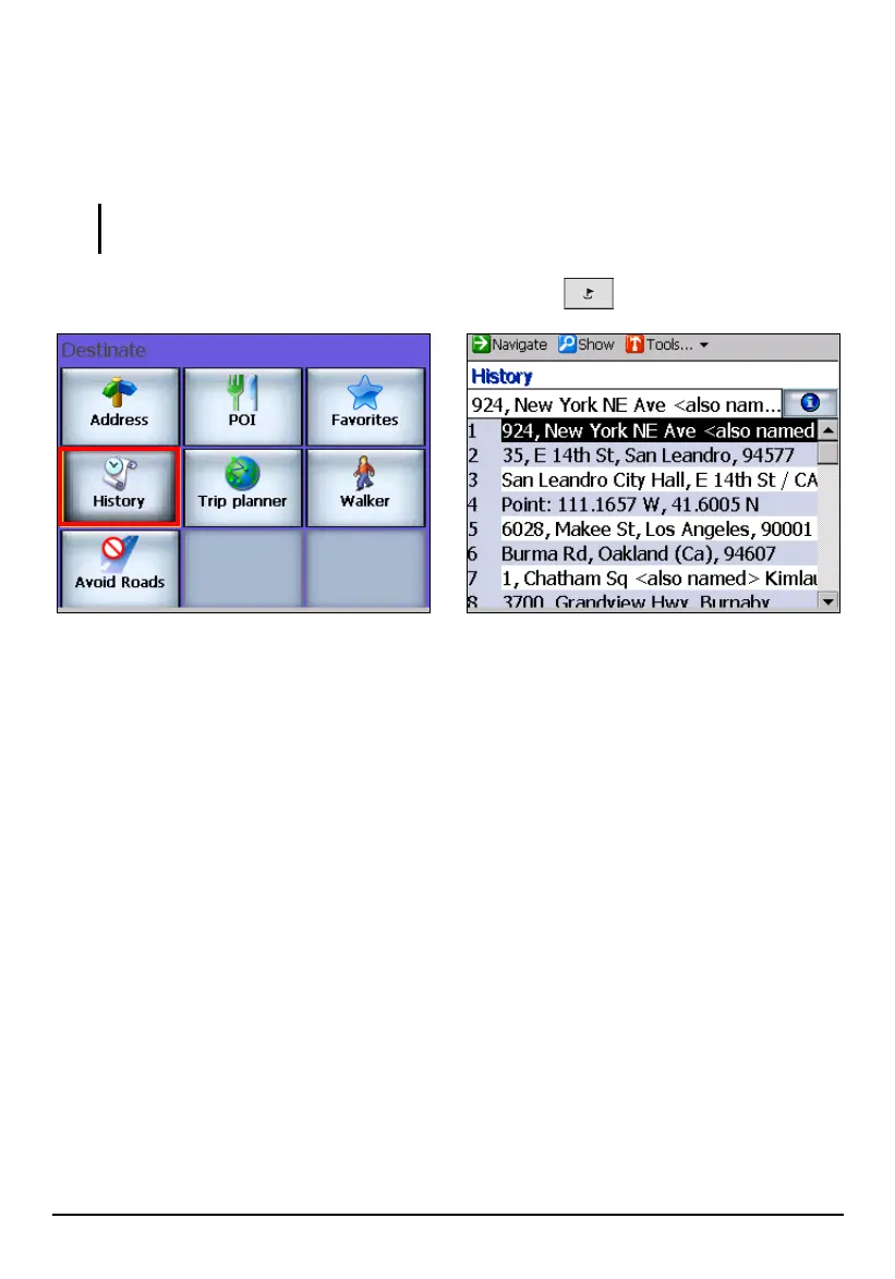 History is a list of previous destinations. It allows you to select a previous