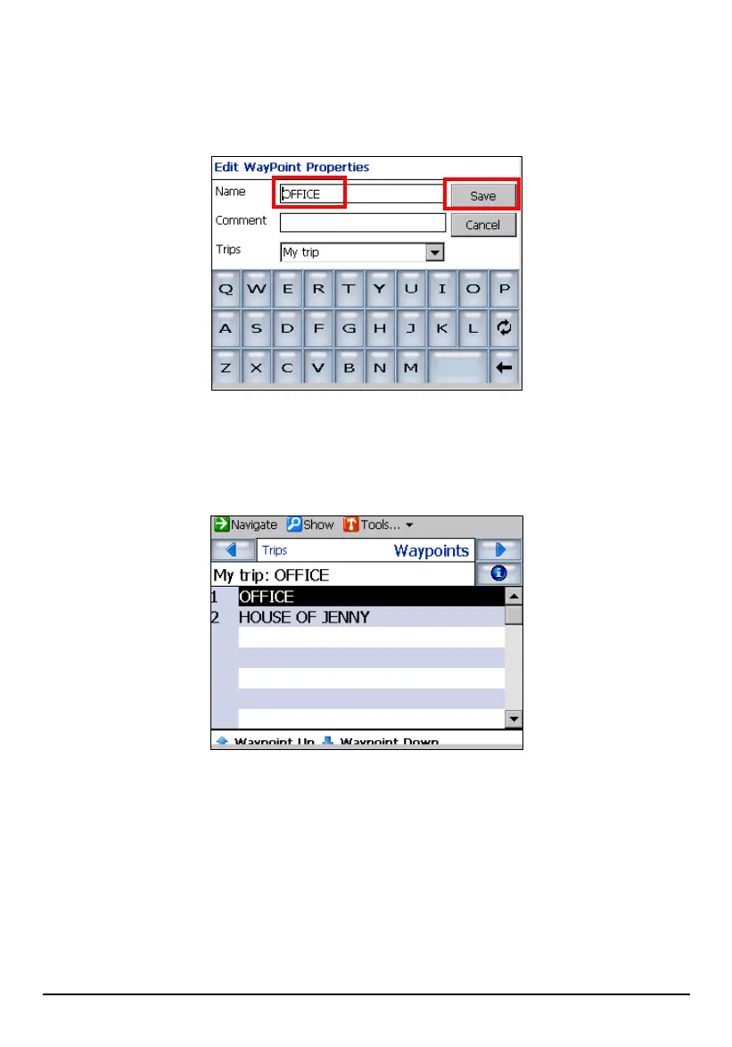 9. Repeat steps 5 to 8 to enter all the waypoints.