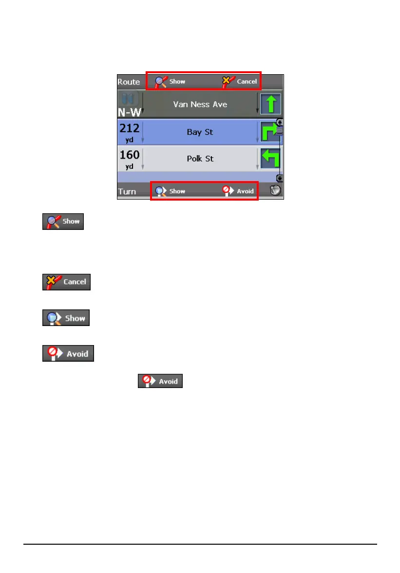 Recalculates the route to exclude a particular turn. When you tap (highlight) a