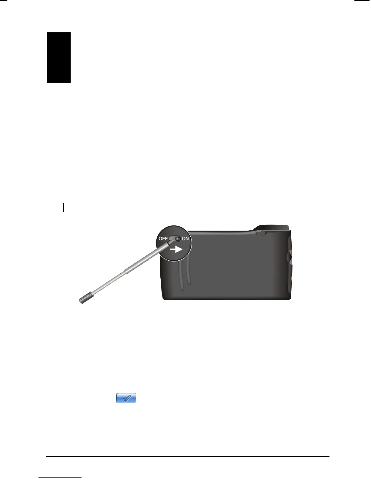 1. stylus and use it to slide the ON/OFF switch to the ON (right)