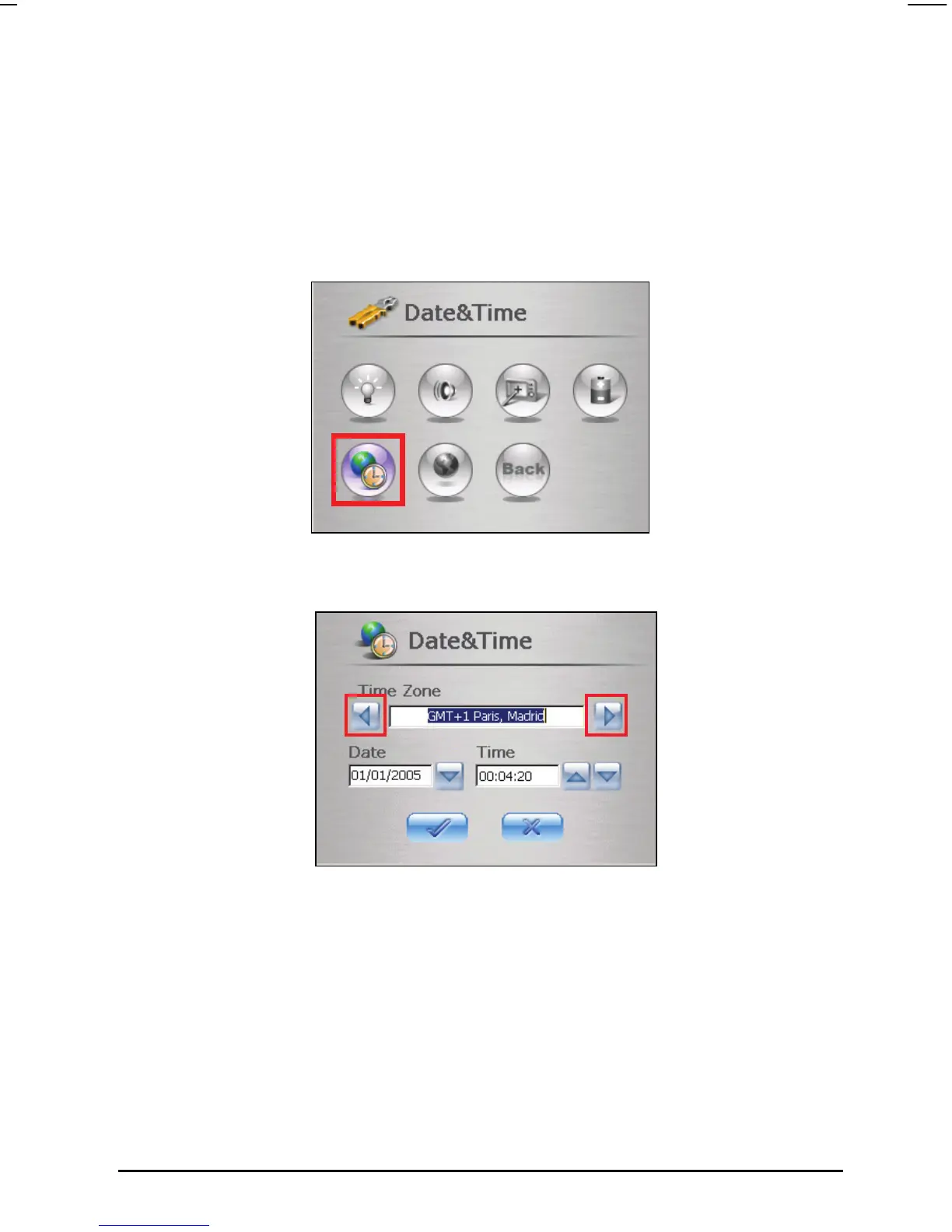 3. To change the time zone, tap the left or right arrow in the Time Zone.