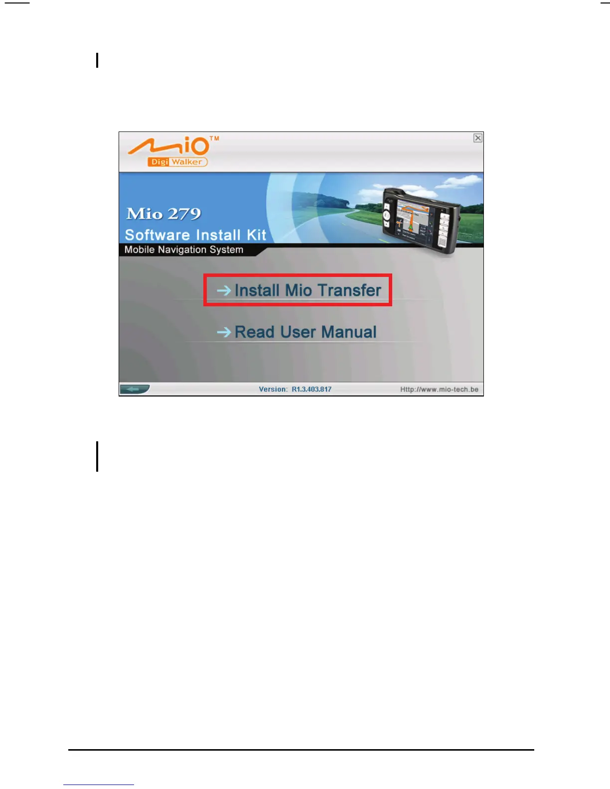 the Setup.exe file in the folder “\Install\Mio Transfer\” of the CD.)