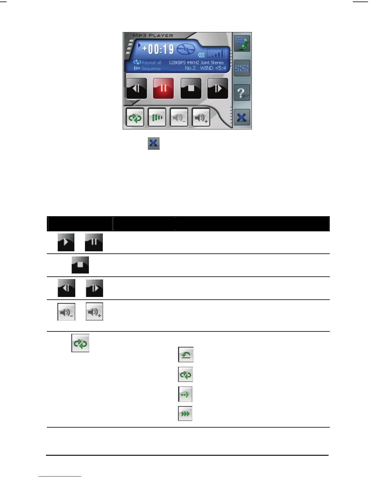 You can control the MP3 Player via control buttons. See the table below for