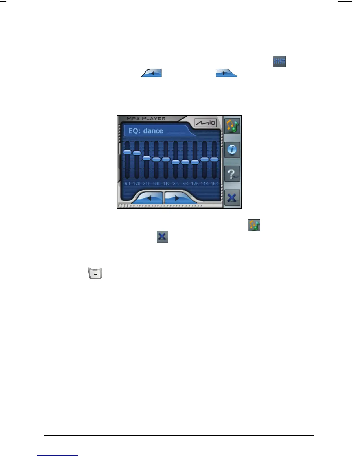 The MP3 Player provides 17 presets for various music effects. Tap