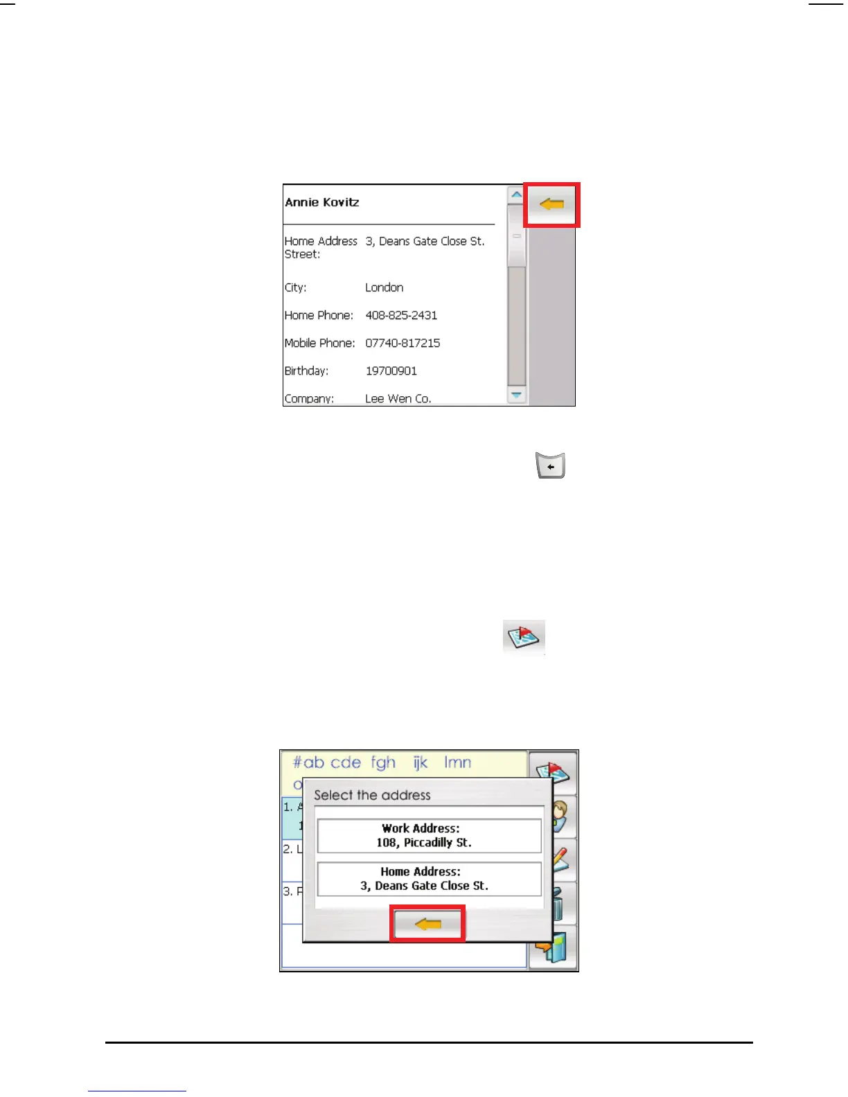 To exit the contacts summary screen, tap the arrow button on the upper right