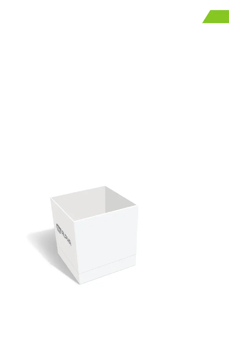 1. Remove the packaging sleeve, open the box, remove the piece holding Alpha,