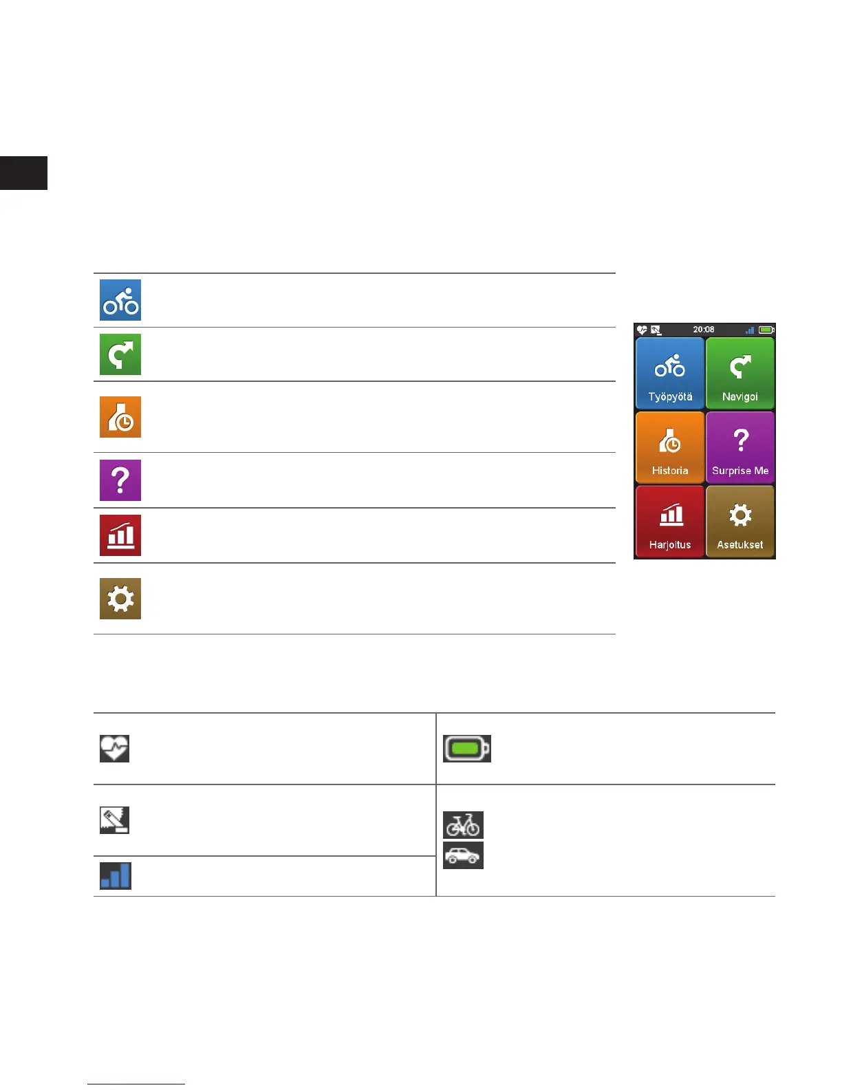 navigointinäytön sekä harjoittelunäytön (kun harjoittelu on valittu).