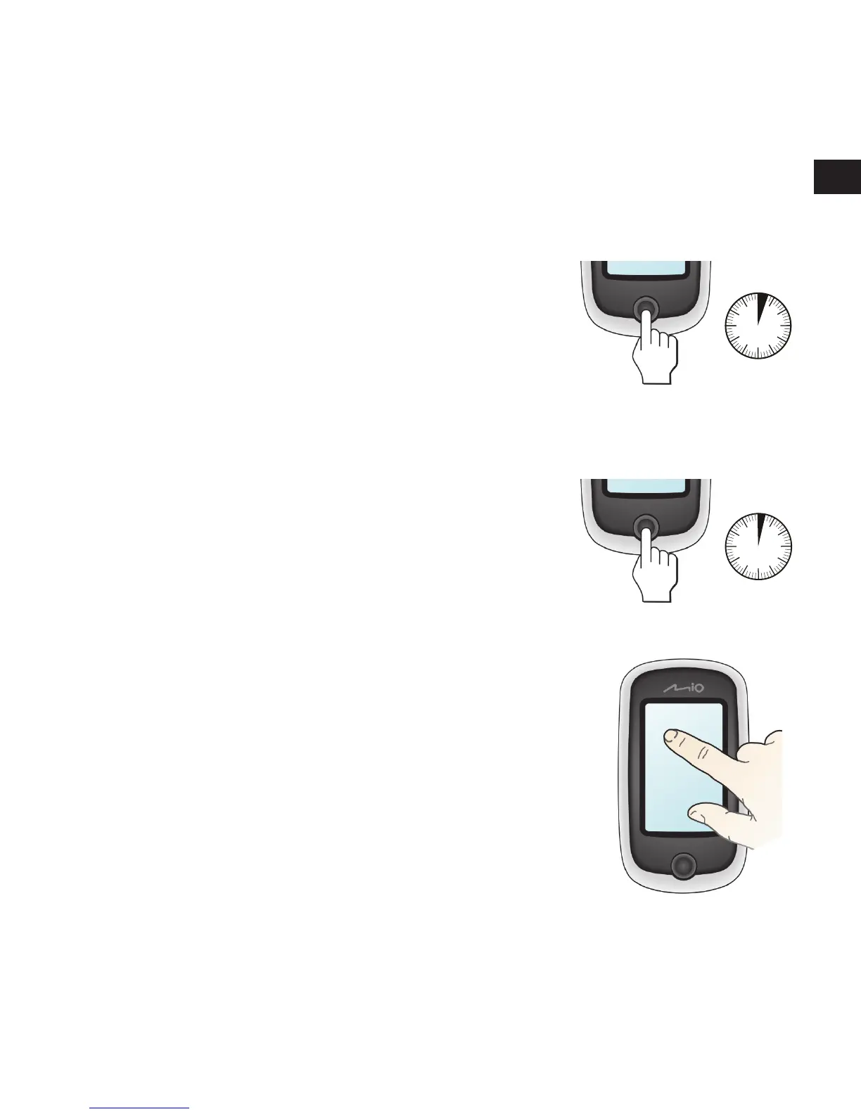 • Innledende påslåing: trykk og hold inne PÅ/AV-knappen i tre