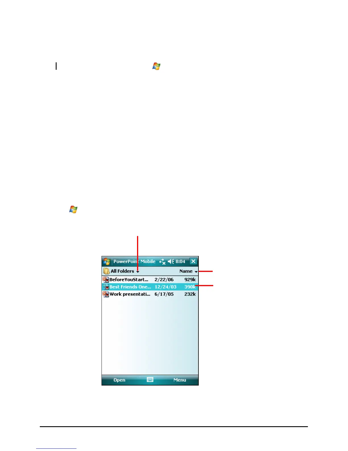 With PowerPoint Mobile, you can open and view slide show presentations