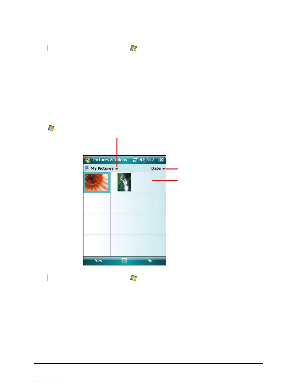 stored on your Pocket PC or on a storage card. You can see your pictures