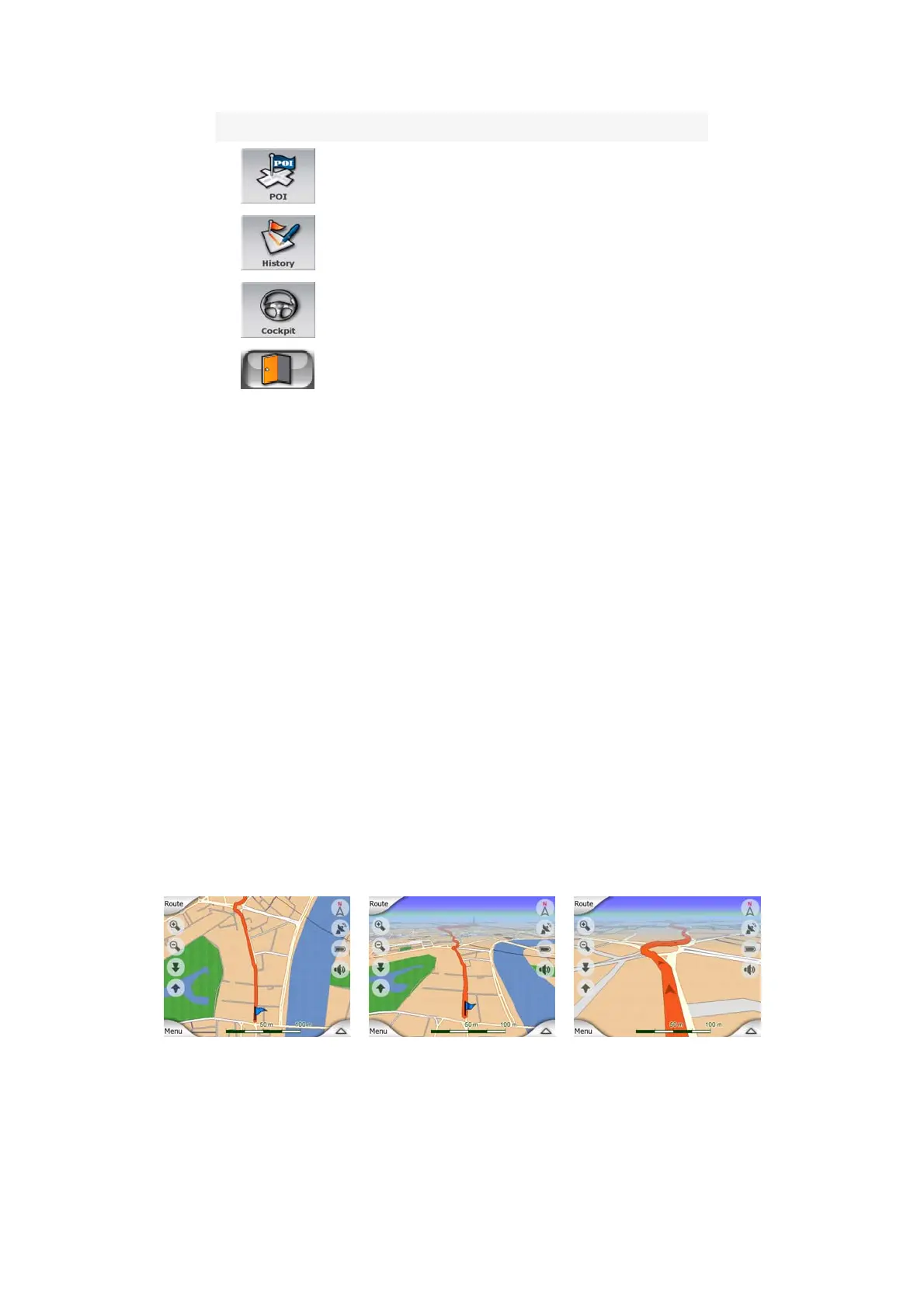 screens with the map (Map screen and Cockpit screen). They are similar in look and