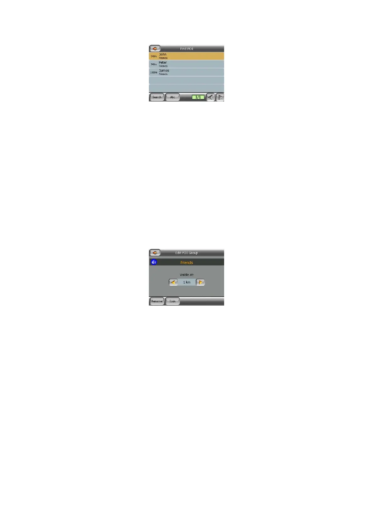 • ABC/Distance: by tapping this button you can have the POIs sorted in an