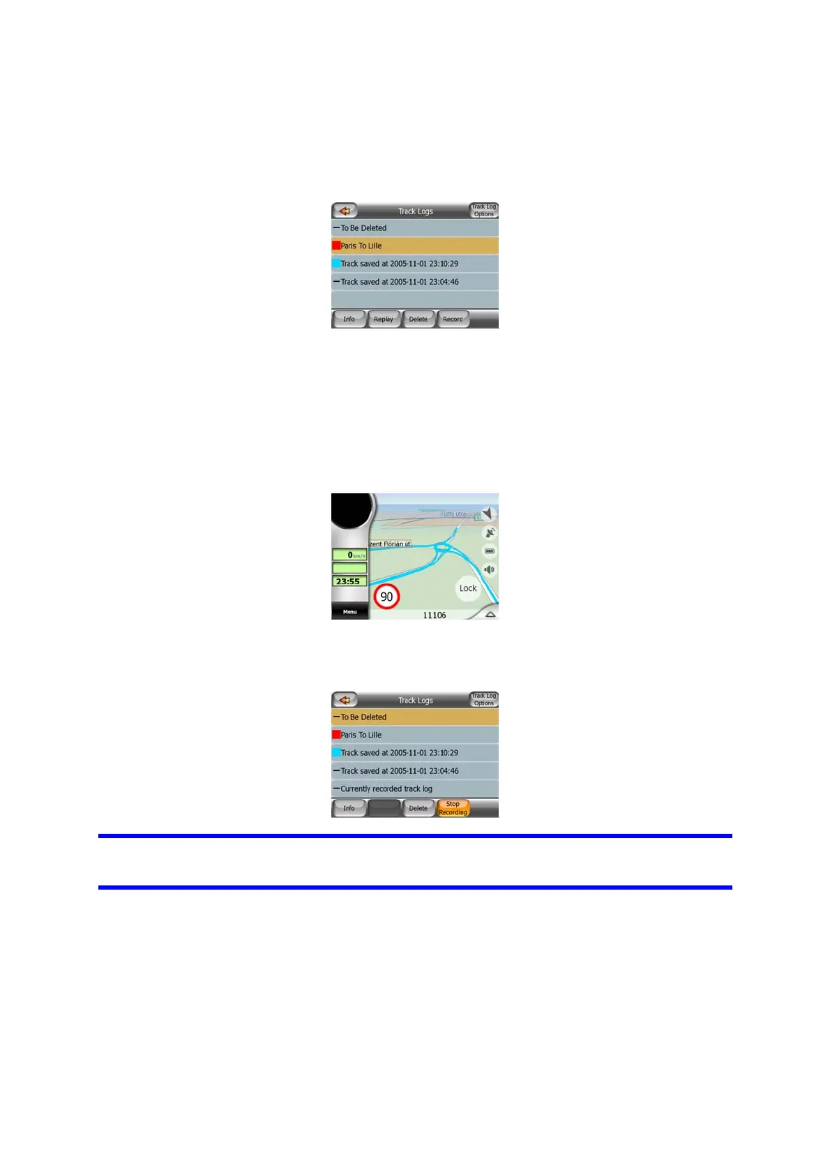 progress. Tapping that icon opens this Track Log screen.