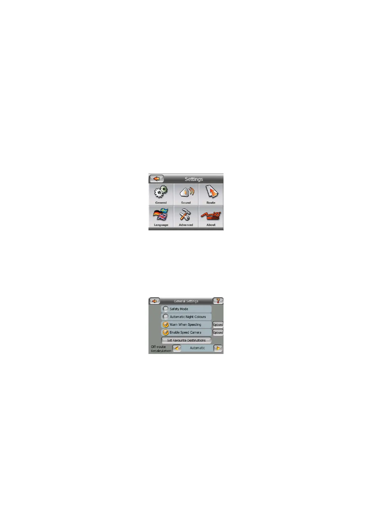 (Page 15) and from the map screens by using the battery icon (Page 30), while