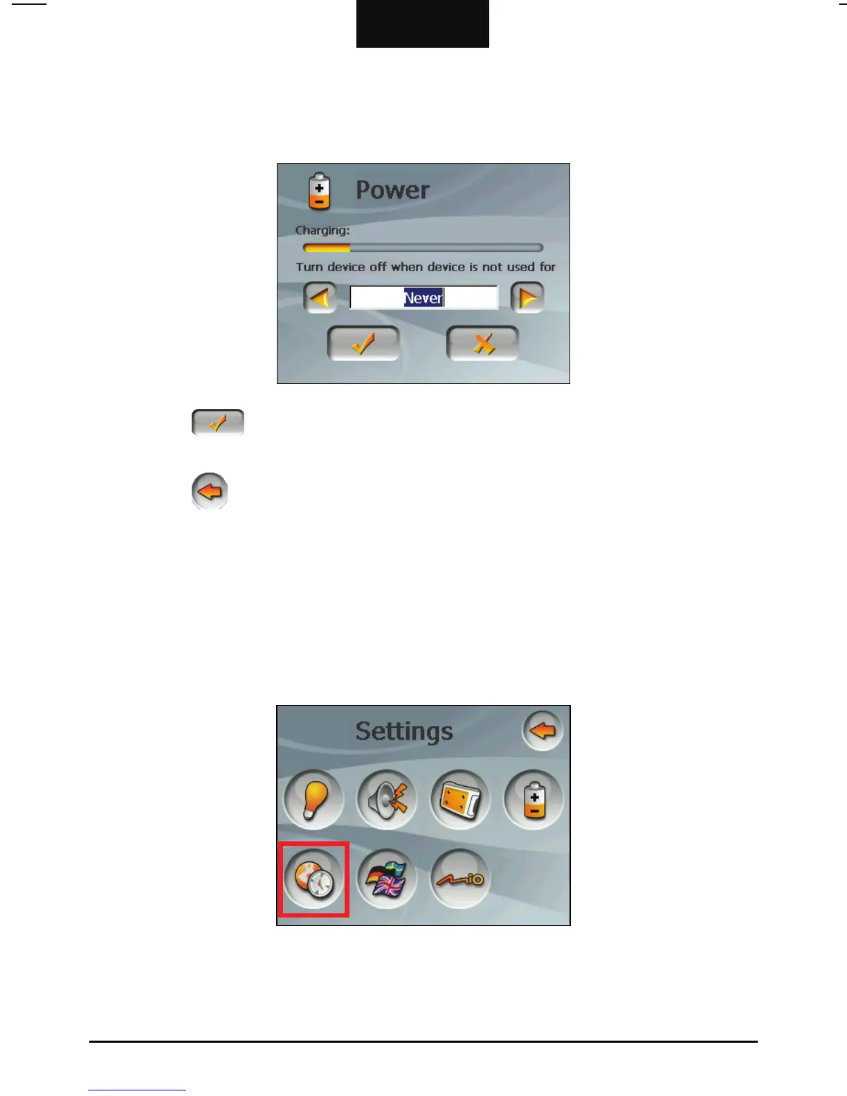 3. To change the time zone, tap the left/right arrow in the Time Zone item.