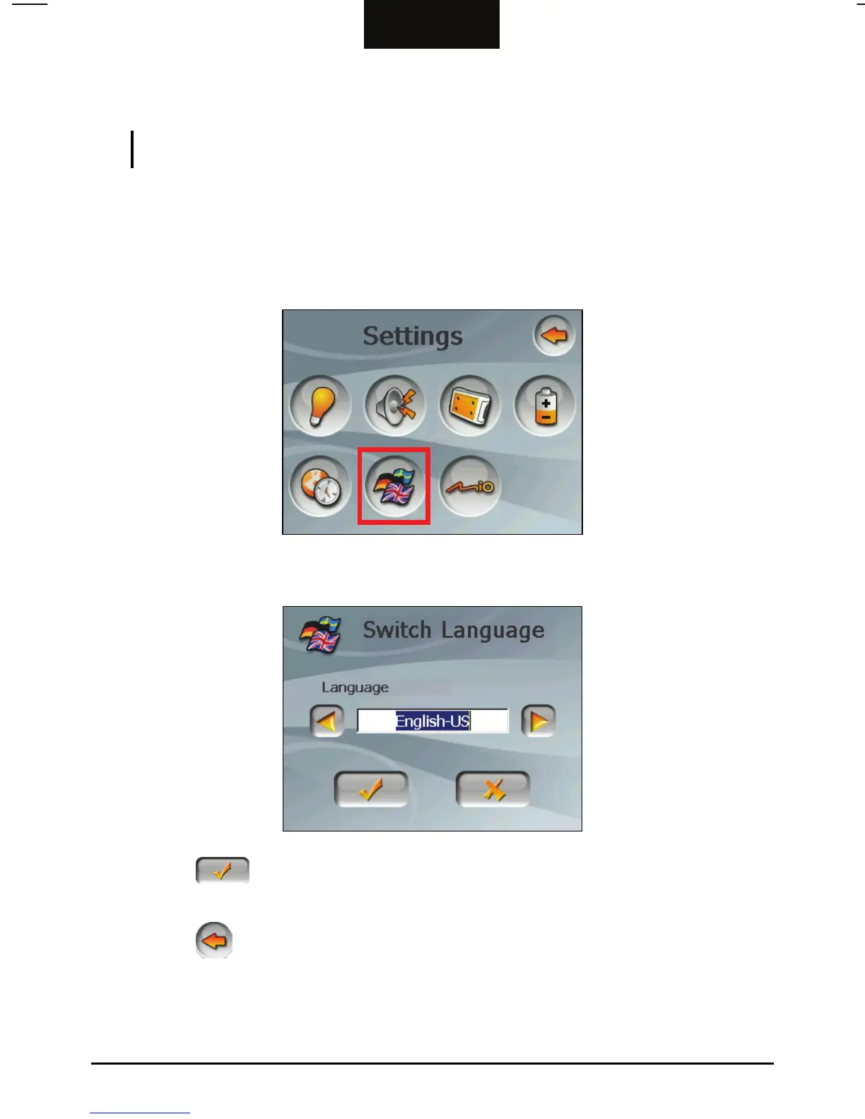 NOTE: To change the language of the Mio Map navigation software, use Settings of Mio