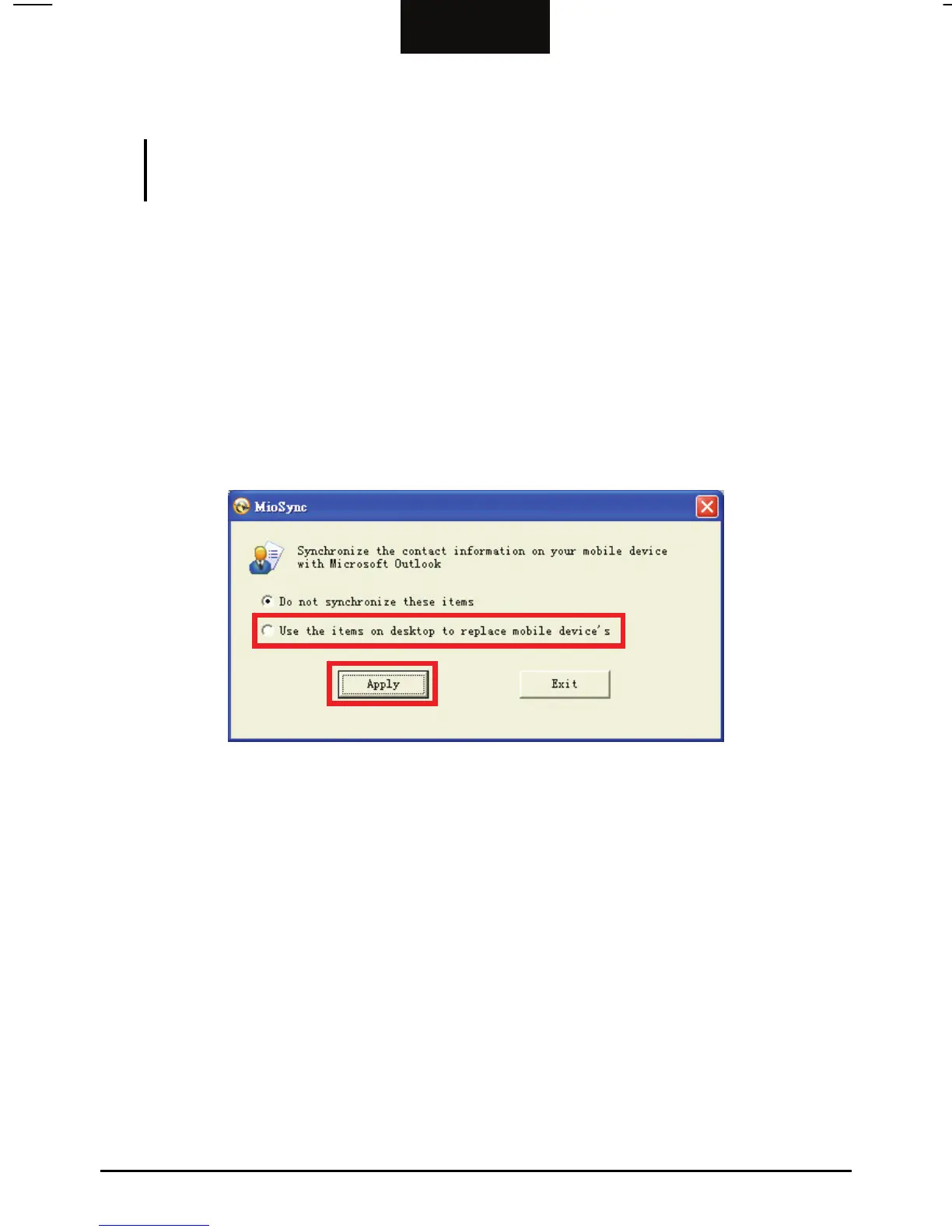 z Make sure that ActivcSync is installed before using Mio Sync.