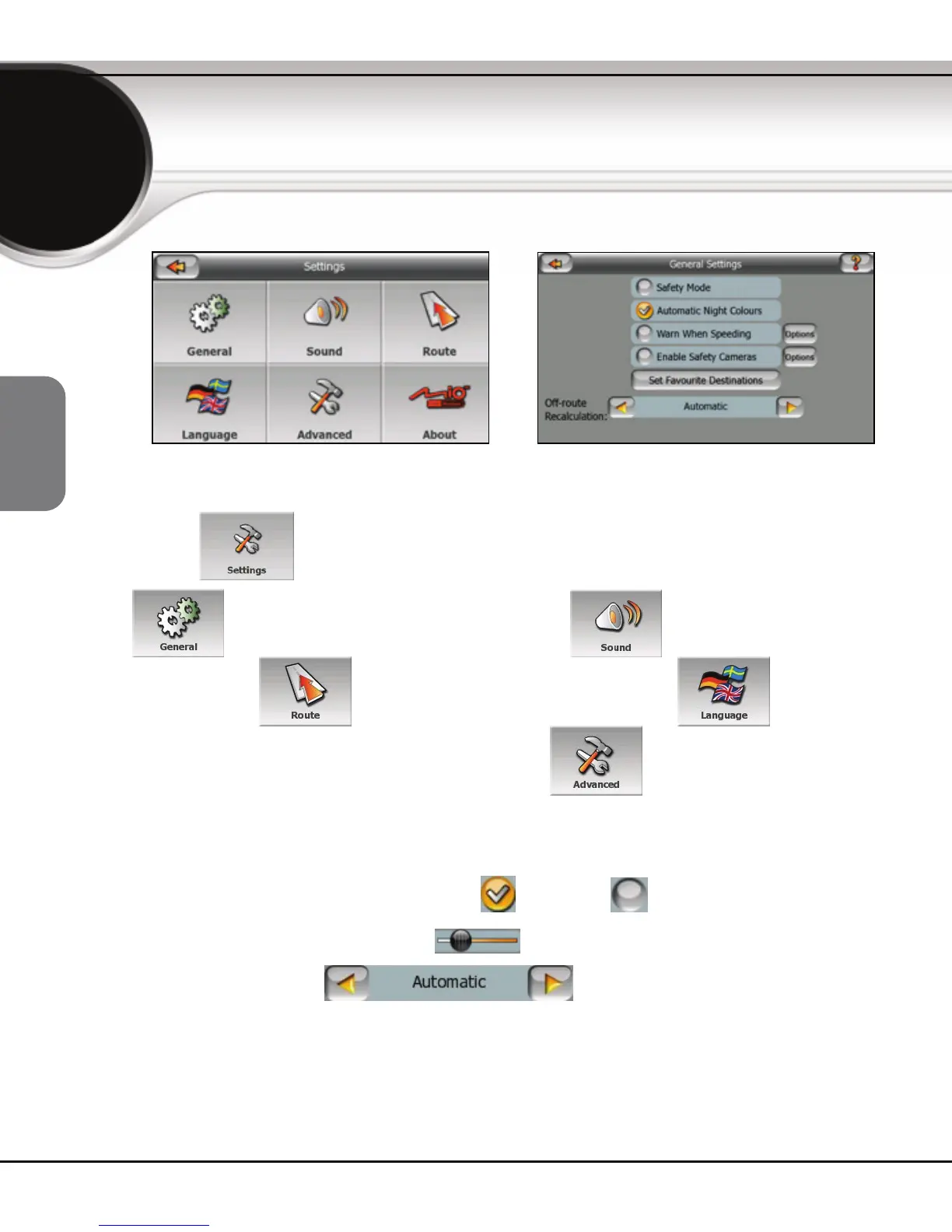 The Settings screen lets you fine-tune the way MioMap works. From the Main