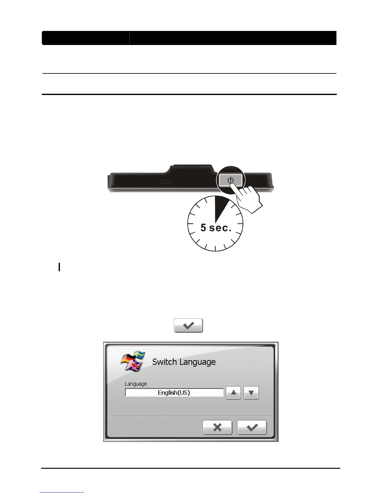The “Switch Language” screen appears. Tap the arrow button t