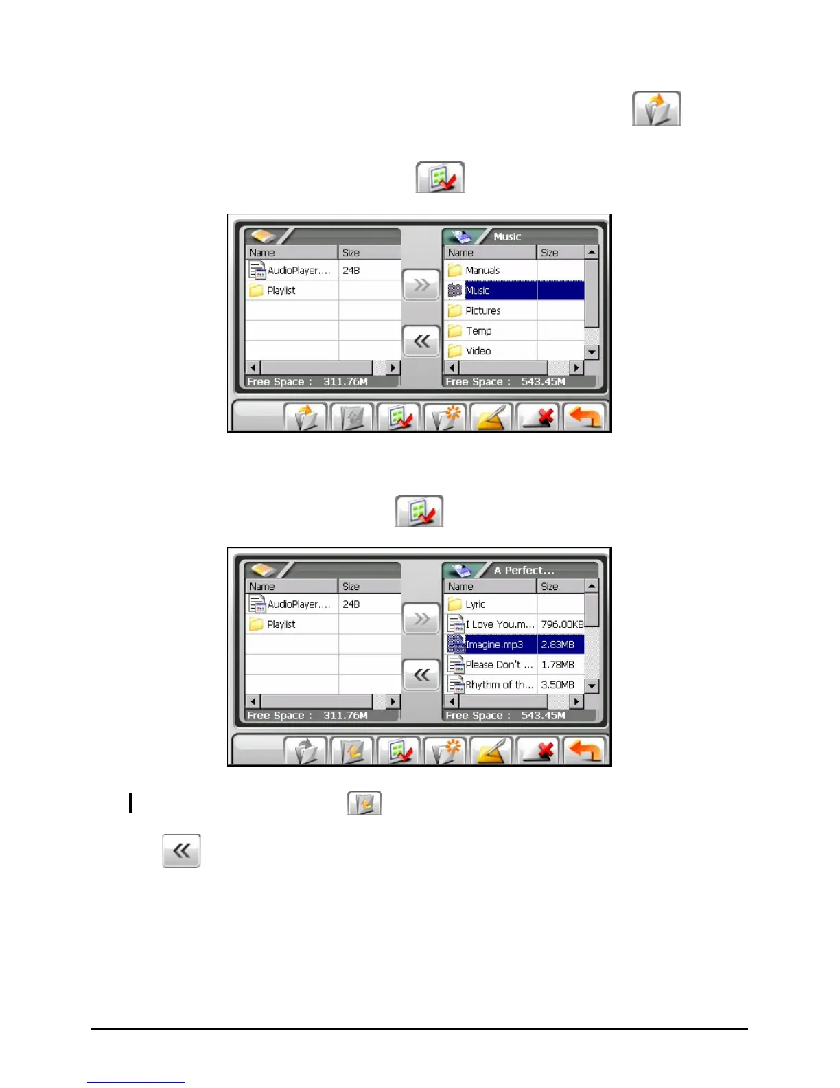 4. If the source file is in a folder of the storage card, tap twice the folder in the