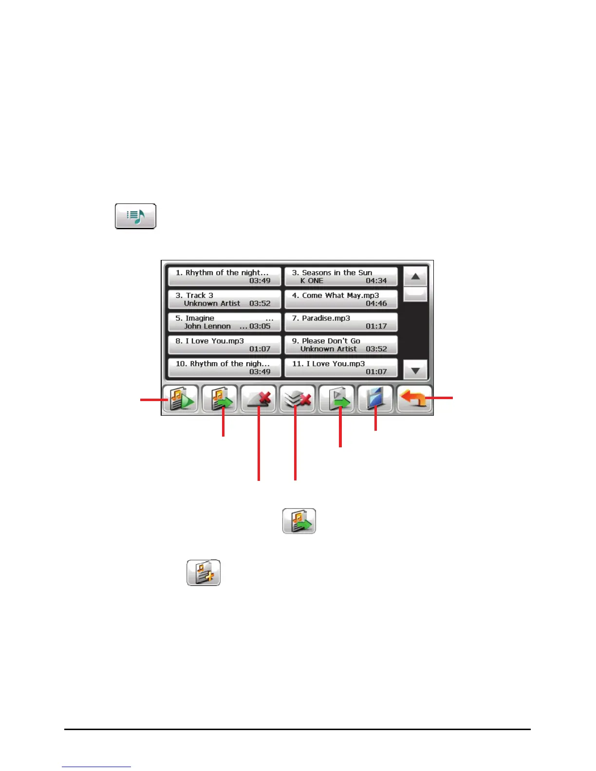 1. Tap on the control panel to open the play list screen. The screen shows