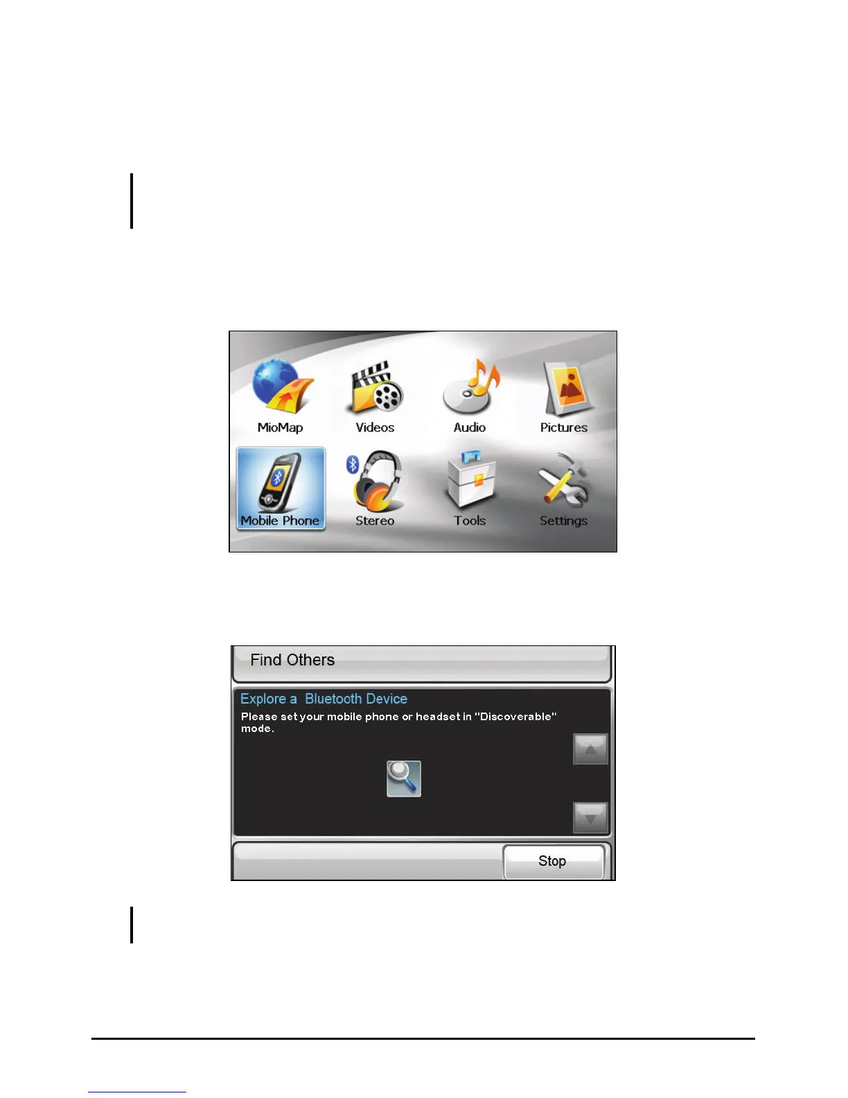 1. Make sure that the Bluetooth mobile phone is in discoverable mode.
